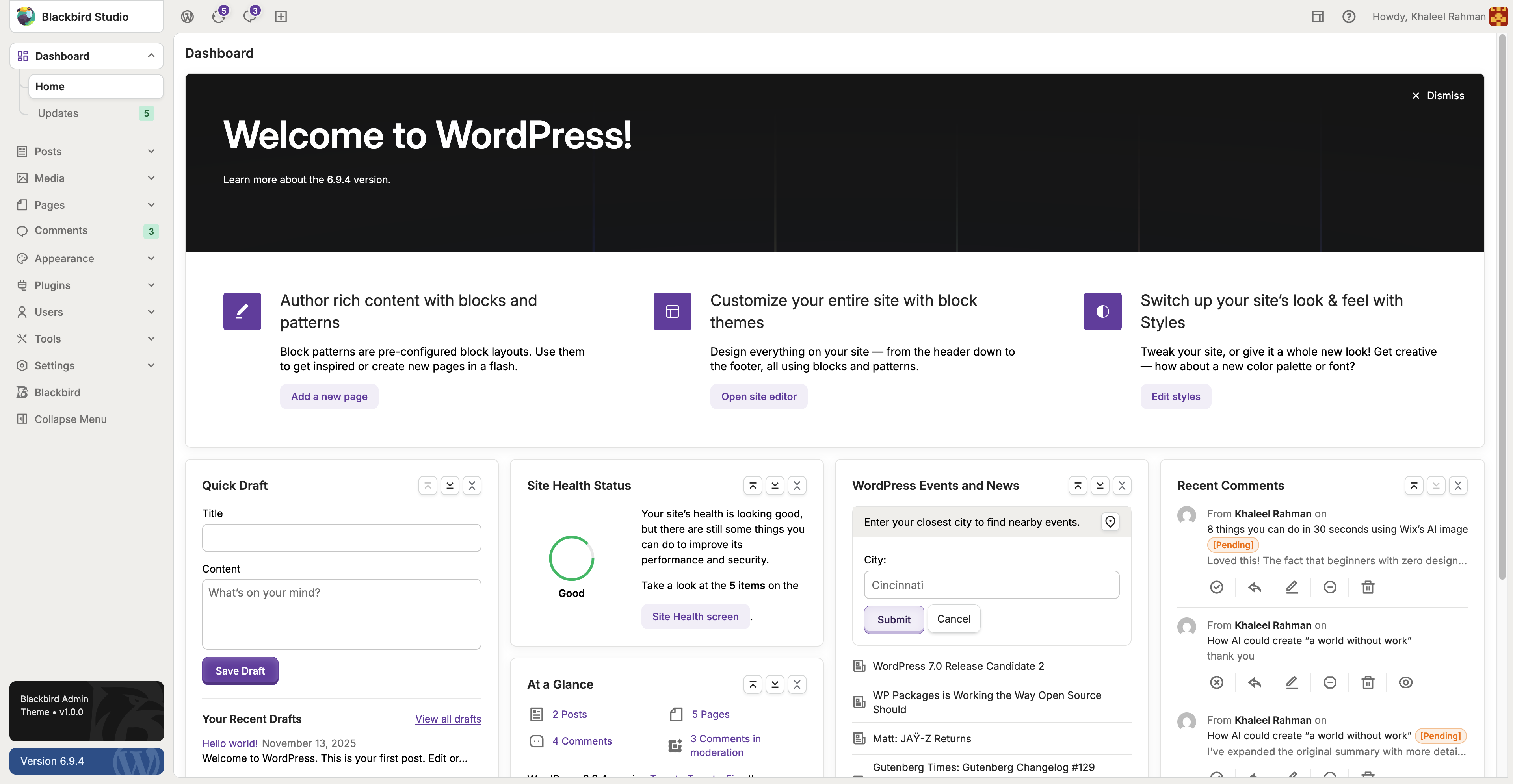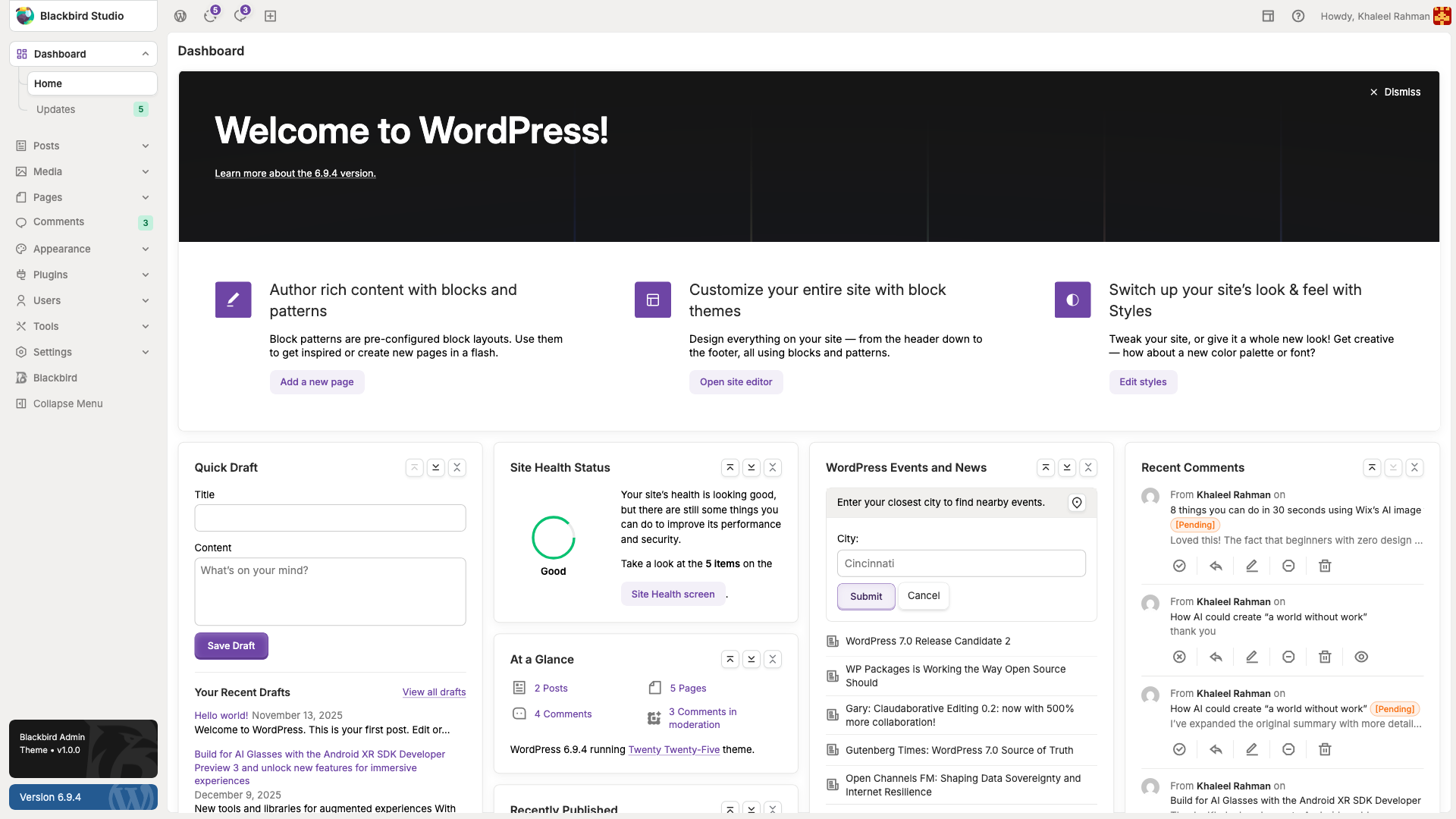 Blackbird transforms the default WordPress dashboard into a clean, modern, and powerful admin experience — built for developers, agencies, and WordPress professionals worldwide.